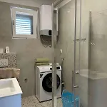 Apartments With Parking Space Jezera, Murter - 23480 erbjuder balkong, sitthörna och ett komplett kök, samt bekvämligheter som luftkonditionering. Den här lägenheten har en dusch och en tvättmaskin för din komfort.